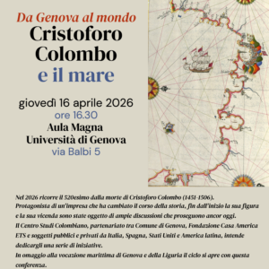 Nel 2026 ricorre il 520esimo dalla morte di Cristoforo Colombo, protagonista di un’impresa che ha cambiato il corso della storia e che ancora oggi suscita riflessioni e dibattiti. Il Centro Studi Colombiano, partenariato fra Fondazione Casa America ETS e il Comune di Genova, intende dedicargli una serie di iniziative. In omaggio alla vocazione marittima di Genova e della Liguria, il ciclo si apre con questo evento.